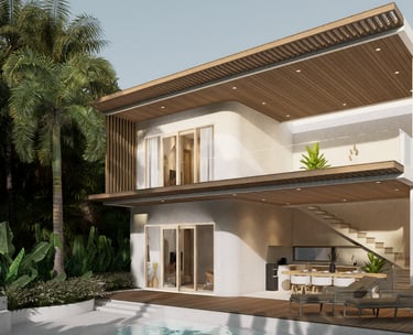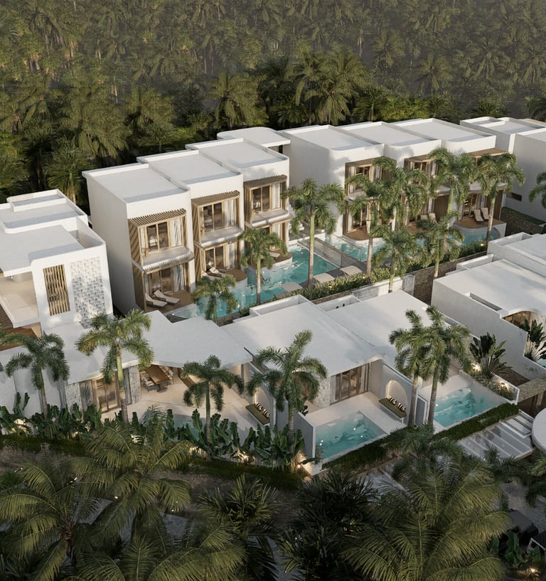 Preview our three villa types through this 3D render, a first look at the harmony between nature and tropical architecture.