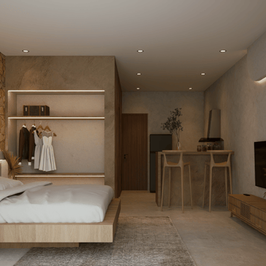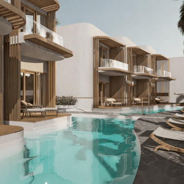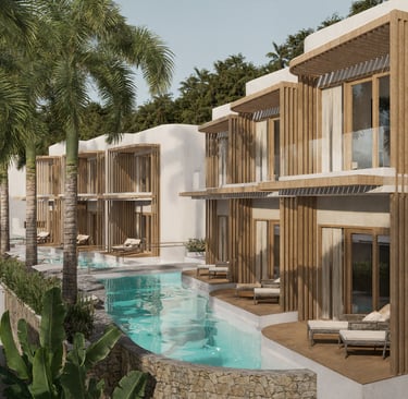 Designed for travelers seeking comfort and simplicity, our Studio Apartments combine smart design with tropical charm. Each apartment offers an intimate private space with a shared Maldivian inspired pool, making them ideal for short stays and rentability.